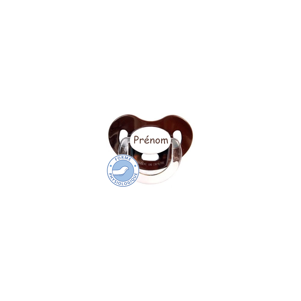 Cette sucette personnalisée est équipée d'une tétine de haute qualité et s'adapte idéalement à la forme du palais de bébé.